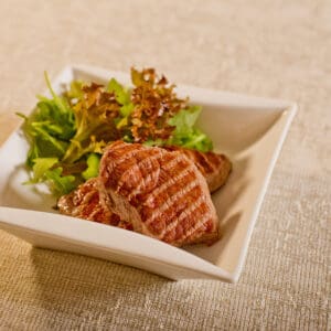 Mignon bovino, óleo de milho, sal, salsa, orégano, cebola, pimenta do reino, alho.